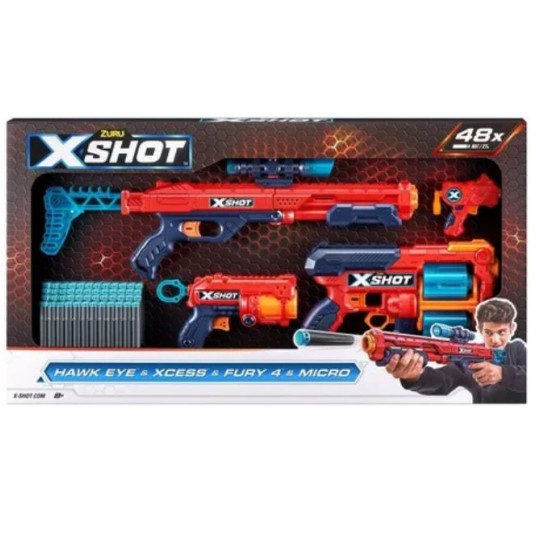 *** ZURU X-SHOT HAWK EYE +XCESS FURY 4 + MICRO /4